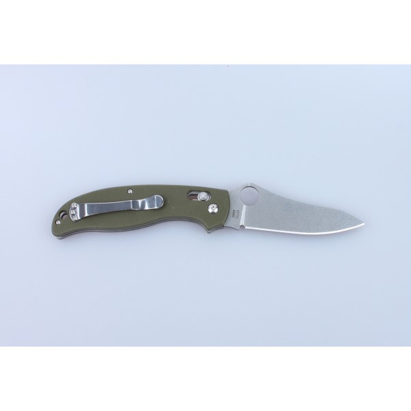 Ganzo G733 — складаний ніж, націлений на використання в туризмі. Він виконаний з нержавіючої сталі і тому йому не страшний контакт з водою. Хоча елементарний догляд у вигляді періодичного протирання клинка, ножу все ж потрібно. Лезо займає 9,1 см від загальної довжини ножа, складовою 21 див. Обух даної моделі дорівнює по ширині 3,3 мм. Геометрія клинка відповідає формі drop point, хоча вона і представлена в зміненому вигляді. На значно ширшій частині клинка з боку рукоятки зроблено отвір. Коли клинок закритий, воно використовується замість традиційного шпенька. Сталь 440С, з якої зроблений ніж, загартована до 58HRC. Заточити її не складно, але заточення буде триматися довго. До речі, лезо ножа — гладке, що робить його універсальним інструментом для вирішення будь-яких похідних завдань, які тільки можна доручити ножу.