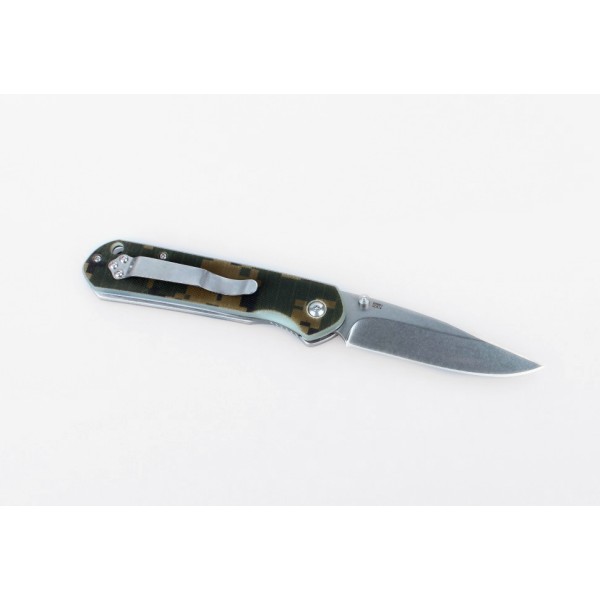 На рукоятці закріплені накладки з термопластика G10. Це міцний композитний матеріал, яких не поступається в надійності сталі. До того ж, він дуже довговічний, стійкий до дії багатьох активних хімічних речовин, не выгорающий на сонці і не усмоктує воду. Поверхня накладок текстурована, щоб ніж можна було міцніше тримати в руках. Також в рукоятку можна втягати ремінець для руки, через спеціально передбачений отвір невеликого діаметру. В кишені або поясному ремені Ganzo G6801 закріплюється за допомогою металевої кліпси. Для вибору доступні чотири варіанти ножів Ganzo G6801: з зеленої, чорної, помаранчевої або камуфляжній рукояткою.