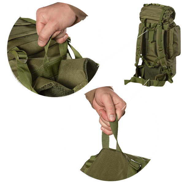 Жорстка конструкція з алюмінієвою каркасною трубкою забезпечує стійкість і підтримку під час перенесення важкого спорядження. Ергономічна спинка рюкзака має м'які амортизуючі вставки, які рівномірно розподіляють вагу, зменшуючи навантаження на спину. Завдяки вентиляційній сітці, спина залишається сухою навіть під час інтенсивних переходів.