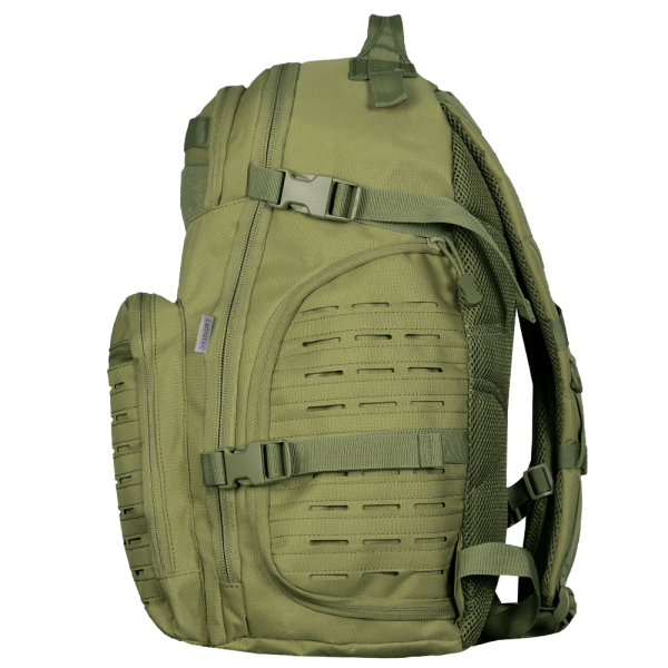 Тактичний рюкзак об'ємом 30 л. Рюкзак має ряд конструктивних особливостей, таких як стропи MOLLE, зроблених за технологією LC (laser cut), пулери на бігунках, D-кільця, а також додаткові лямки для фіксації об'єму (компресійні лямки).