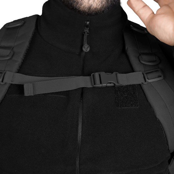 Спереду та по боках на рюкзаку присутні якісні, прошиті на спеціалізованому устаткуванні стропи MOLLE для додаткових підсумків та спорядження. На лямках по два D-кільця на які чіпляється додаткове спорядження тощо. Усі застібки-блискавки оснащені якісними пулерами, для роботи з ними в рукавичках.