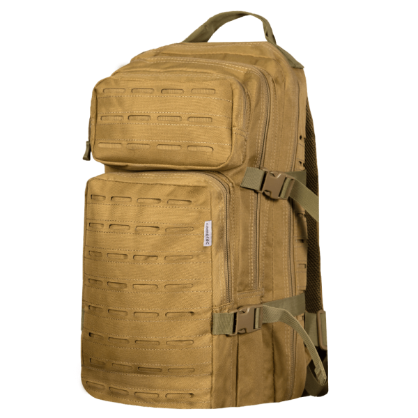 Тактичний рюкзак об'ємом 25 л. Рюкзак має ряд конструктивних особливостей, таких як стропи MOLLE, зроблених за технологією LC (laser cut), пулери на бігунках, D-кільця, а також додаткові лямки для фіксації об'єму (компресійні лямки).