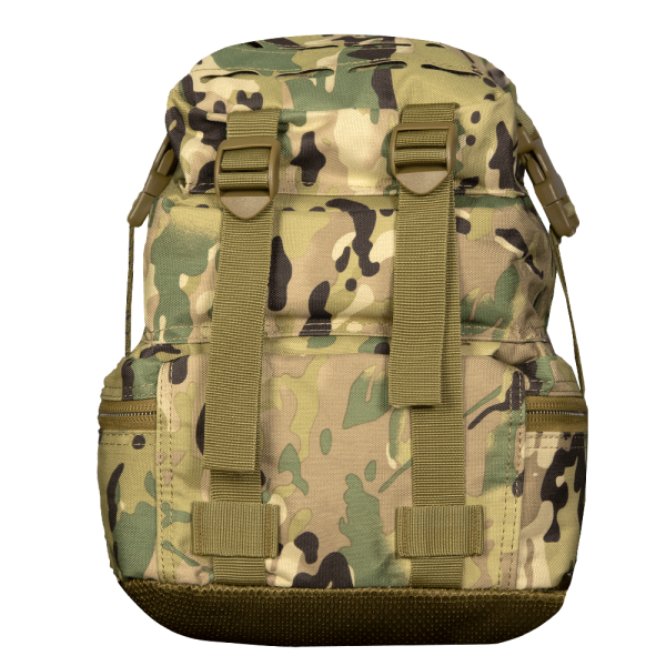 Тактичний рюкзак об'ємом 25 л. Рюкзак має ряд конструктивних особливостей, таких як стропи MOLLE, зроблених за технологією LC (laser cut), пулери на бігунках, D-кільця, а також додаткові лямки для фіксації об'єму (компресійні лямки).