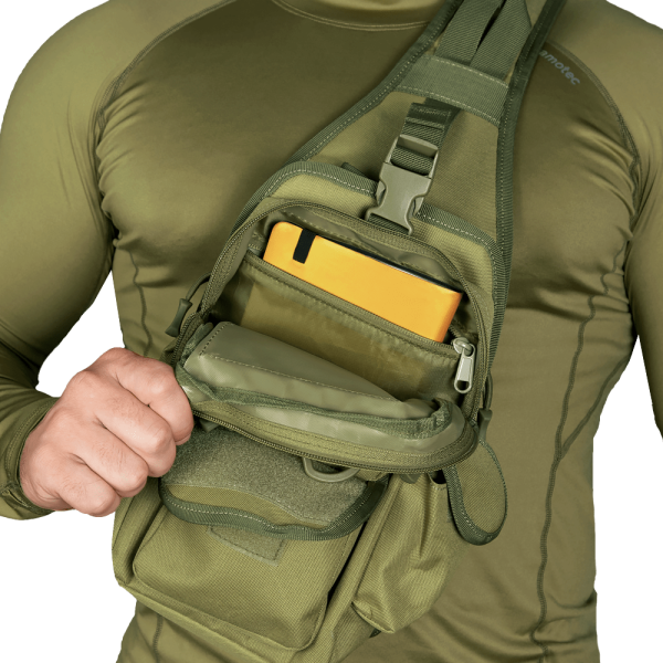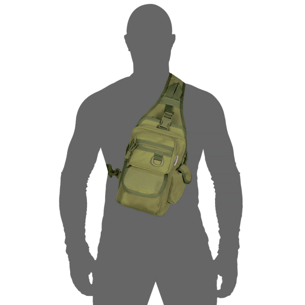 Сумка має компактний, ергономічний дизайн, та  досить зручна в експлуатації. Зазвичай її носять через плече, спереду або ззаду. Лямка з верхньої сторони пришита до сумки, а знизу фіксується  карабіном на одне з D-кілець. Що дозволяє носити її як через ліве, так і через праве плече.