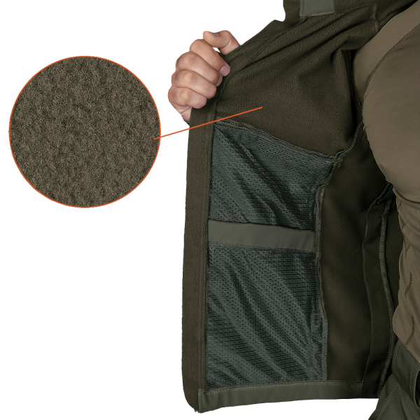 Куртка вироблена з оригінальної тканини SoftShell зі справжньою мембраною. Головною перевагою цього матеріалу є ідеальне утримання балансу між захистом від холоду, вологи й хорошою циркуляцією повітря.