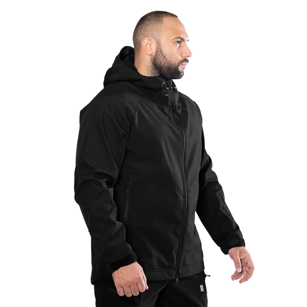 Куртка вироблена з оригінальної тканини SoftShell. Це легка, сучасна тканина зі справжньою безпоровою мембраною, яка складається з трьох шарів: мікрофліс який зберігає тепло; мембрана що захищає від вітру та вологи; еластичний поліестер із вологостійким просоченням, який захищає від пилу, бруду й вологи.