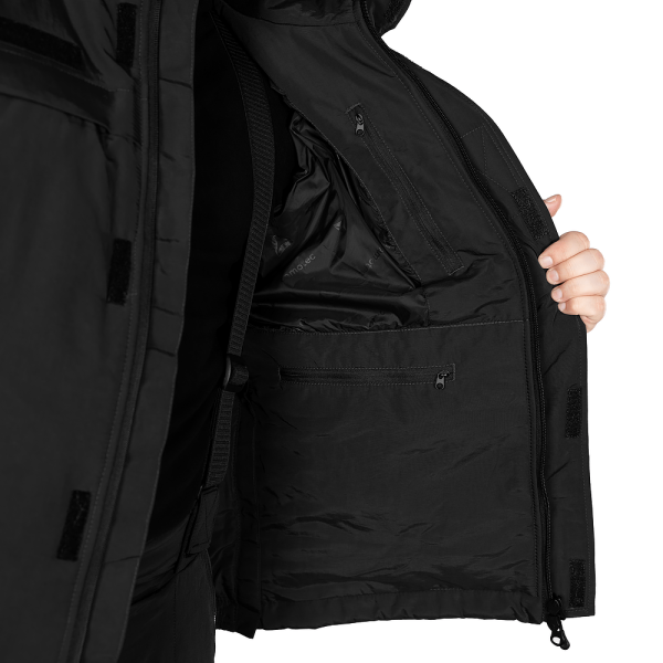 Спереду куртка має кишені з флісовим підкладом — в холодну погоду ви можете швидко зігріти руки. Окрім цих кишень, є ще по кишені на рукавах, дві кишені на грудях з захисним клапаном, а також три внутрішні кишені. Також всі застібки мають захисні клапани, які захищають бігунок застібки від вологи та бруду.
