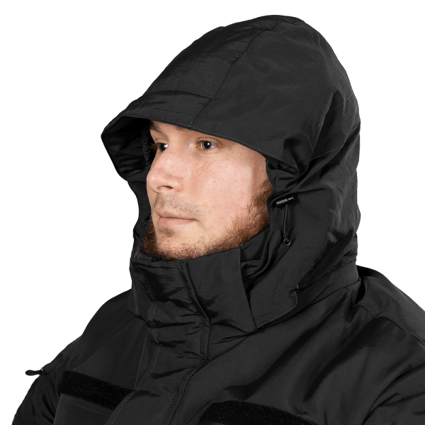 Patrol System 3.0 оснащена утепленим каптуром, що знімається. Він фіксується на блискавку і застібається на липучки, які можна сховати у спеціальних відділеннях в комірі. Зручний ергономічний дизайн дозволяє регулювати глибину, об’єм та ширину каптура, а піддашок надає додатковий захист під час снігу та дощу.