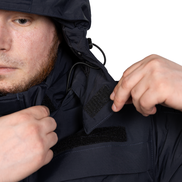Patrol System 3.0 оснащена утепленим каптуром, що знімається. Він фіксується на блискавку і застібається на липучки, які можна сховати у спеціальних відділеннях в комірі. Зручний ергономічний дизайн дозволяє регулювати глибину, об’єм та ширину каптура, а піддашок надає додатковий захист під час снігу та дощу.