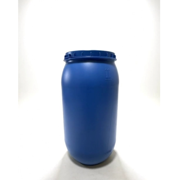 Бочка из пищевого пластика объемом 210 л и пластиковым зажимом для крышки. Подходит для любых хозяйственных нужд.