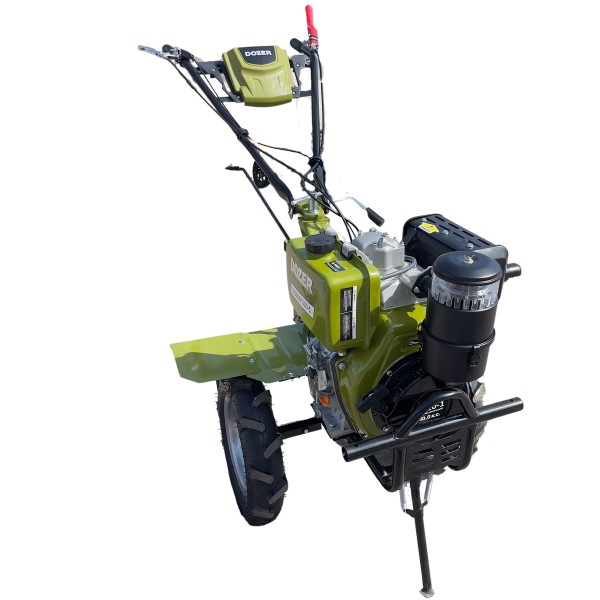 Мотоблок DOZER D10-1(4.00-10) з дизельним двигуном– одна з найкращих моделей фермерської техніки, призначена для автоматизації процесів обробки земельних ділянок, а також дана модель має диференціал, що дозволить робити розвотор без зайвого навантаження. Використовуючи різні навісні аксесуари (плуг, підгортачі, фрезу, причіп, картоплекопалку та ін.), за допомогою функціонального обладнання можна значно прискорити та полегшити процес виконання безлічі операцій. Компактні розміри, можливість повороту та регулювання висоти ручок дозволять використовувати мотоблок у важкодоступних місцях: для обробки ділянок поблизу та під деревами, біля паркану, серед чагарників. Економічність витрати палива та продумана конструкція роблять цю модель техніки незамінним помічником на городі, у дворі, у саду. Продумана система охолодження захищає мотор від перегріву і забезпечує тривалий термін служби агрегату.