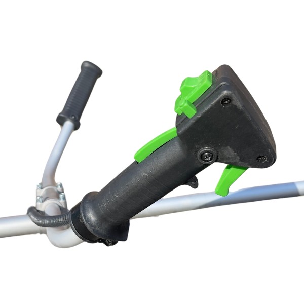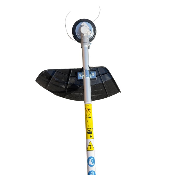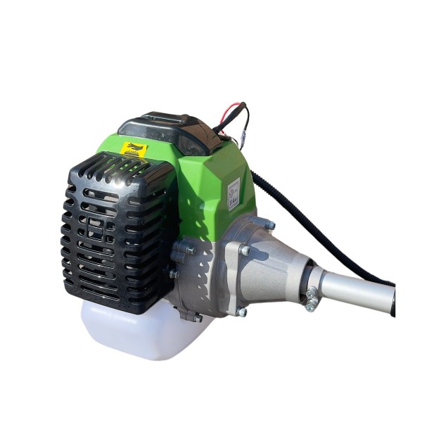 Двигун,штанга, ручки для тримання і керування,  верхній і нижній редуктори, кранштейни, котушка, ніж,захисний кожух, окуляри, ключі для збирання