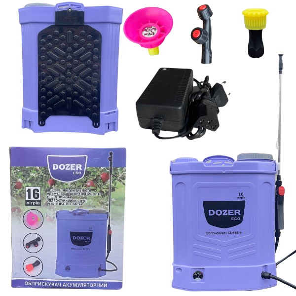 Обприскувач,інструкція,брандспойт телескопічний,комплект змінних насадок,зарядний пристрій