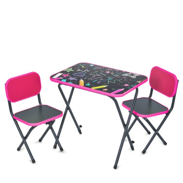 СТОЛИК Габаритный размер: - Ширина 60 см; - Глубина 44,5см; - Высота 52 - 57см (3 уровня наклона столешницы); - Столешница 60 х 44,5 х 2см; СТУЛЬЧИК Габаритный размер: ширина 30см, глубина 27см, высота 52 - 57см. Размер сиденья: ширина 30см х глубина 27см. Высота до сиденья: 28 - 32см. ДОПОЛНИТЕЛЬНО: 2 стульчика в комплекте МАТЕРИАЛ ИЗДЕЛИЯ: МДФ, металл КОРОБКА (БРУТТО/РАЗМЕР) 10,95 кг/65-55-7,5см