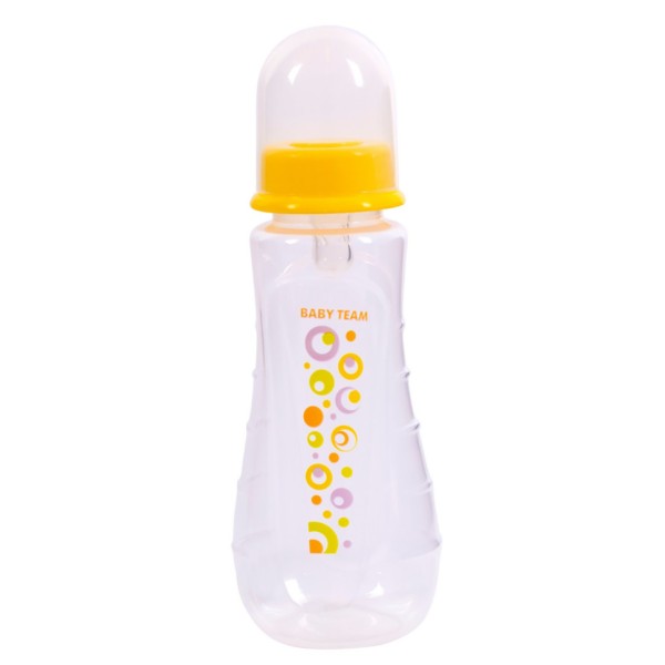 Бутылочка для кормления Baby Team (Беби Тим) отлично подойдет для питания вашего ребенка. Почему стоит купить: изготовлена из высококачественных и безопасных материалов не содержит вредных веществ и Бисфенол А имеет рельефную мерную шкалу выемка посередине «талия» позволяет максимально удобно держать бутылочку и не выскальзывает даже из мокрых рук.