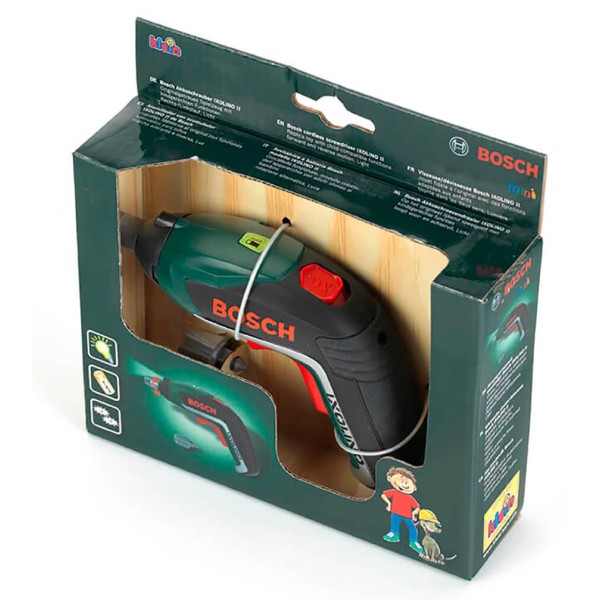 "Акумуляторна викрутка Bosch Ixolino II - Іграшка з допустимими для використання дітьми функціями - З живленням від акумулятора - Правостороннє/лівостороннє обертання - Світло та звук при натисканні на перемикач - Зі змінними бітами - Підходить для всіх систем загвинчування Bosch та Technico - Оригінальний дизайн Bosch