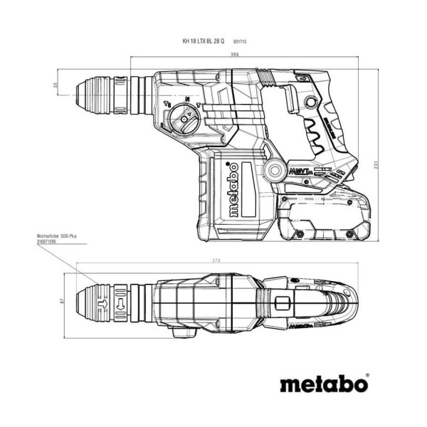 Технічні особливості акумуляторного перфоратора Metabo KH 18 LTX BL 28 Q: