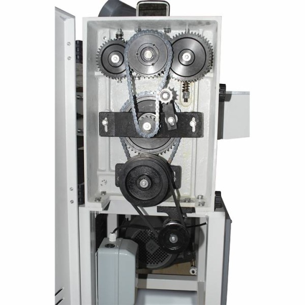 - Чотири вертикальні напрямні забезпечують точність і стійкість при встановленні рейсмусового стола по висоті.