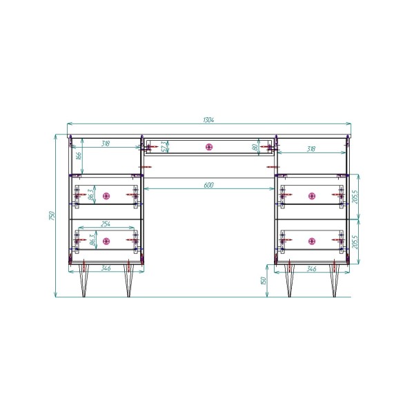 Габаритні розміри Ширина: 1300 мм Глибина : 404 мм Висота: 750 мм.Колір: Дуб Тахо/Натуральний/Білий Матеріал виготовлення ДСП Kronospan. Ніжки та ручки з дерева ясен покриті матовим поліурітановим лаком
