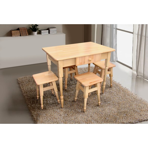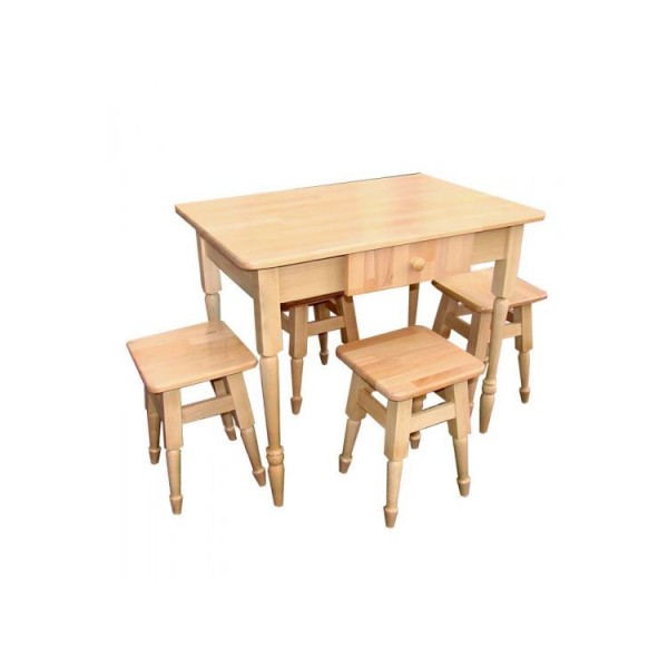 Компанія «Мікс Меблі» пропонує якісний комплект зі столу і чотирьох табуретів в класичному вигляді. Весь комплект надійний, оскільки виконаний з натурального дерева Бук (масив), що дає гарантію довгому використанню такого комплекту. Меблі з натурального дерева завжди в моді та відповідають якісним характеристикам. Розмір столу 90х60 сантиметрів Розмір: Стол 600*900 Колір: Бук натуральний Матеріал: Масив, Бук