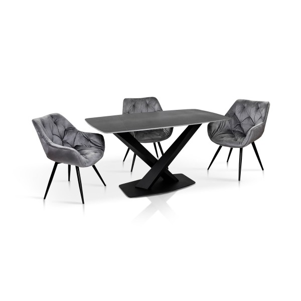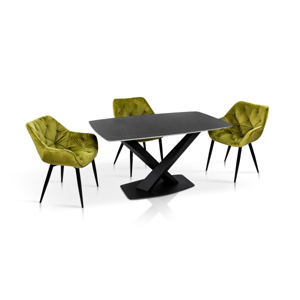 Розмір: 1400*800 мм; Висота: 760 мм. Колір: Ніжки: Чорний; Столешня: Кераміка чорний мармур. Матеріал: Ніжки і каркас: Метал; Столешня: Кераміка, товщиною 8 мм. Не розкладний; Стільниця столу Бінго виготовлена зі штучного мармуру, має гарну матову структуру, стійка до перепаду температур, ударів і подряпин.