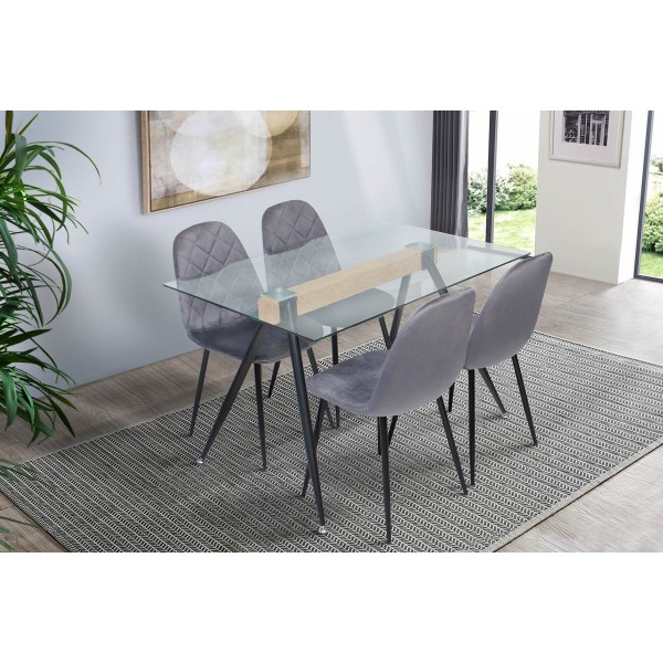 Основа столешні: Скло прозоре, термозагартоване (триплекс). Товщина скла = 10 мм. Ніжки - метал, колір чорний. Розмір стільниці 120*80 см. Висота: 75см. Загартоване скло прозоре. Ніжки чорні - фарбований метал + термодрук