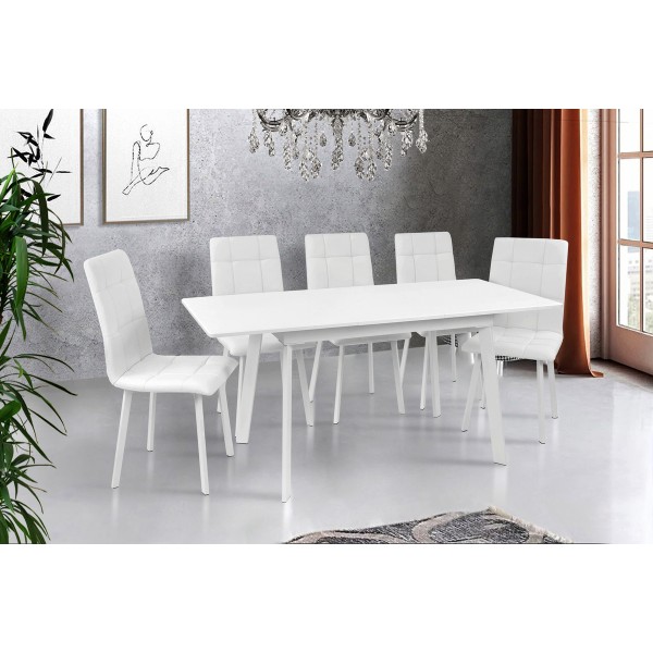 Розмір: 1200(+400)*750. Колір: Каркас і ніжки: Білий; Столешня: білий ТС Матеріал: Каркас і ніжки: Метал; Столешня: МДФ у ПВХ плівці. Вкладка у стіл з механізмом "бабочка". Товщина столешні: 20 мм. Каркас і ніжки: порошкова покраска