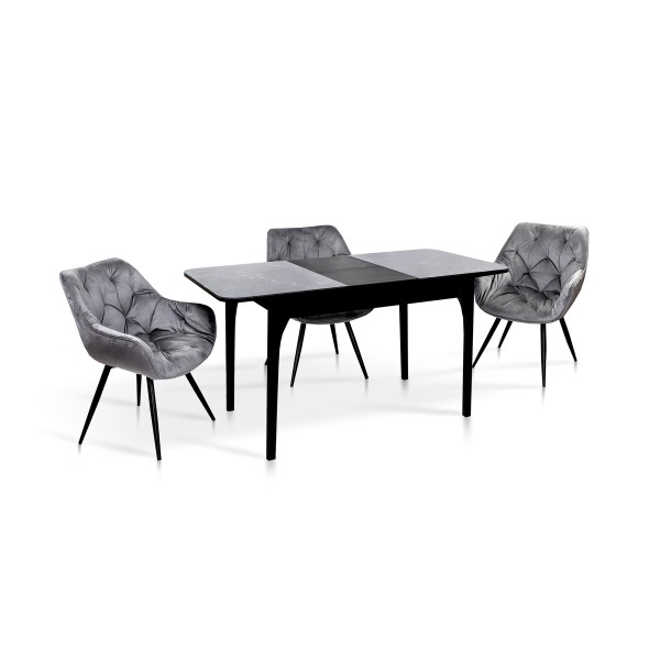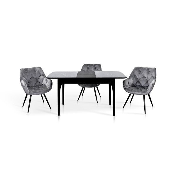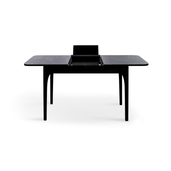 Розмір: 1100(+350)*700 Колір: Ніжки і каркас: Чорний; Столешня: Мармур Чорний Матеріал: Каркас: масив ясена; Столешня: ДСП + скло; Вкладка-бабочка: Шпонований МДФ.Скло на столешні: товщиною 4 мм.