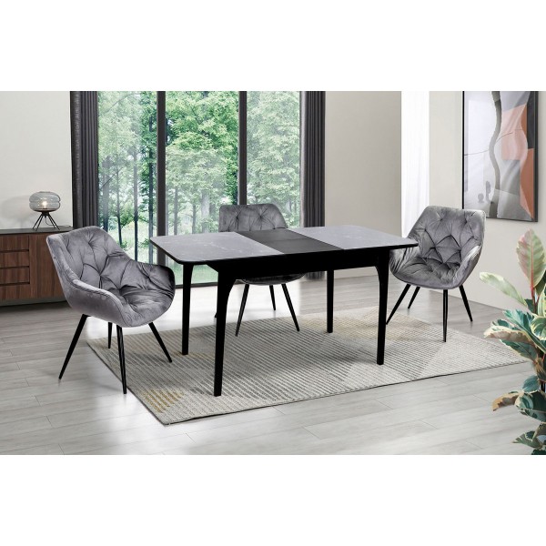 Стіл Фієста (110+35)*70, чорний/мрамор чорний