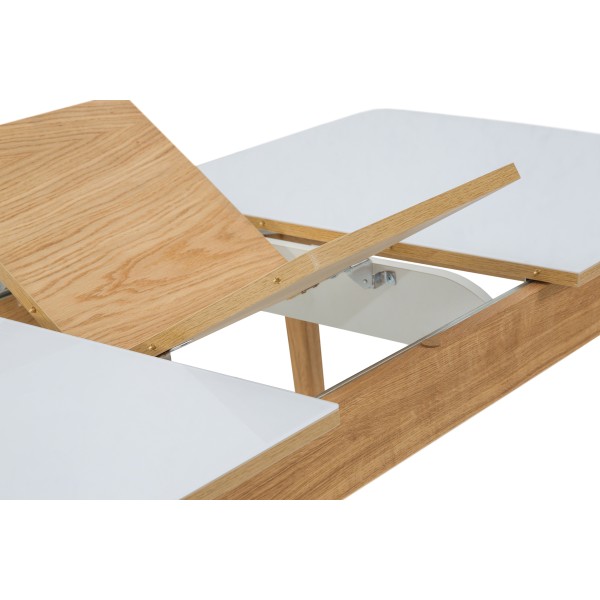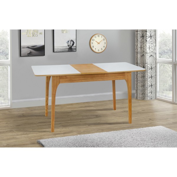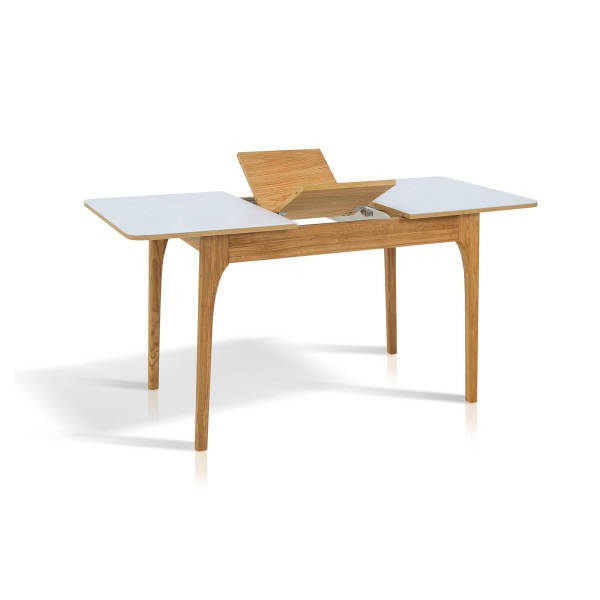 Розмір: 1100(+350)*700 Колір: Ніжки і каркас: Горіх ; Столешня: Білий. Матеріал: Каркас: масив ясена; Столешня: ДСП + скло; Вкладка-бабочка: матовий МДФ.Скло на столешні: Лакобель білий товщиною 4 мм.