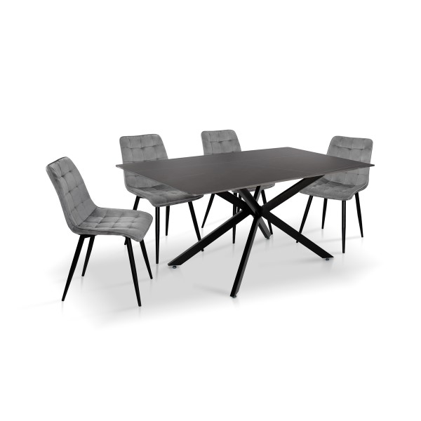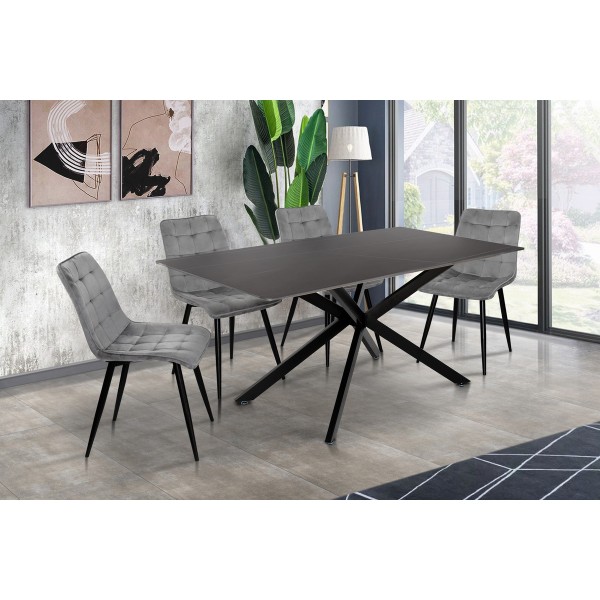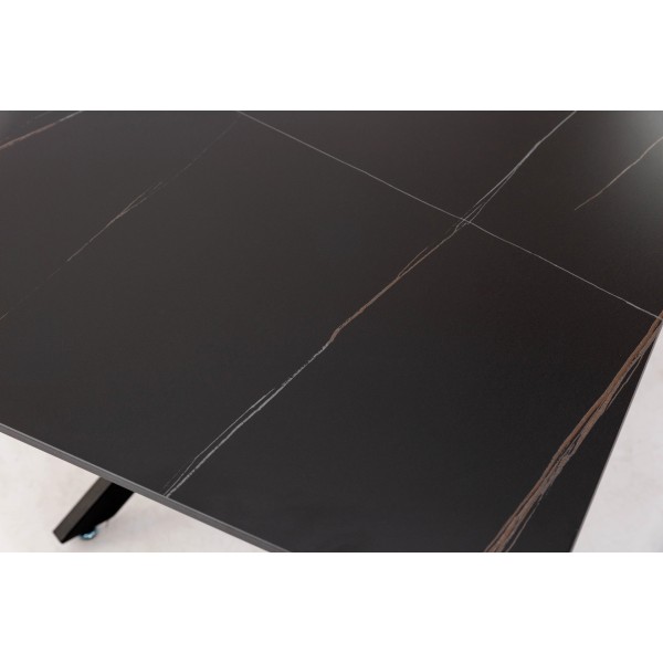 Основа столешні: керамічна стільниця 12 мм + основа МДФ 18 мм (матова). Ніжки та каркас - метал чорний колір. Розмір 160 см*90 см. Висота: 76 см. Вага: 80 кг
