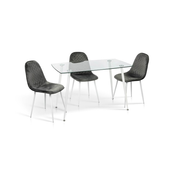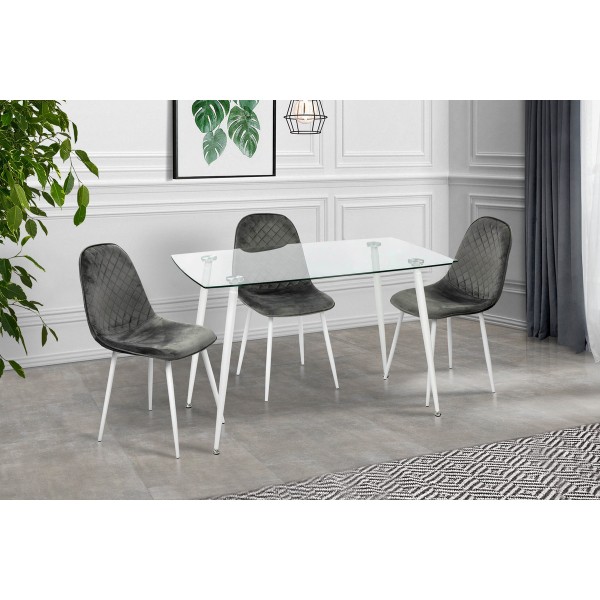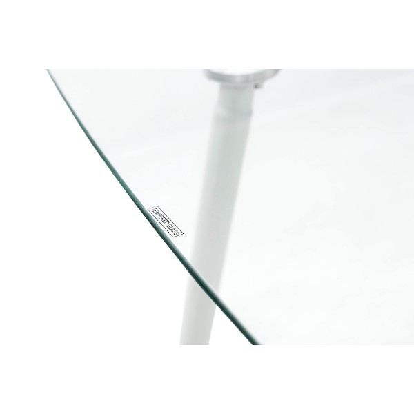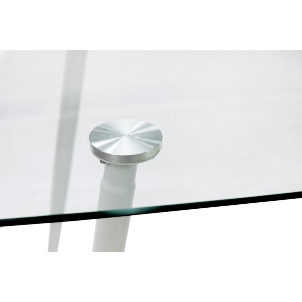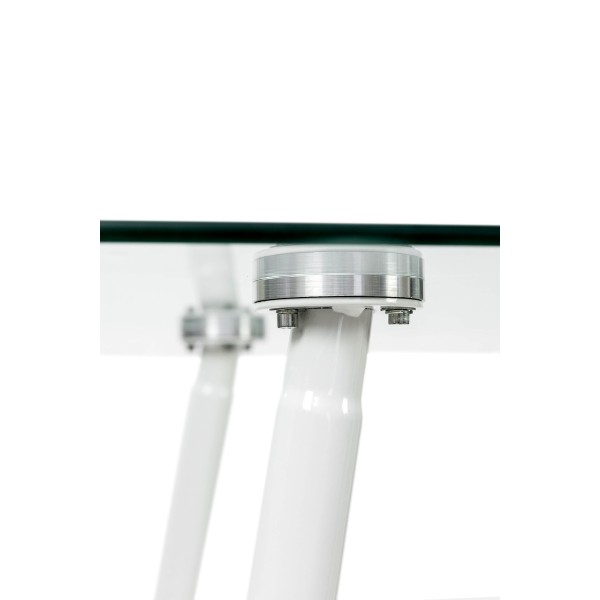 Основа столешні: Скло прозоре, термозагартоване (триплекс). Товщина скла = 10 мм. Ніжки - метал, білий. Розмір стільниці 120*70 см. Висота: 75 см