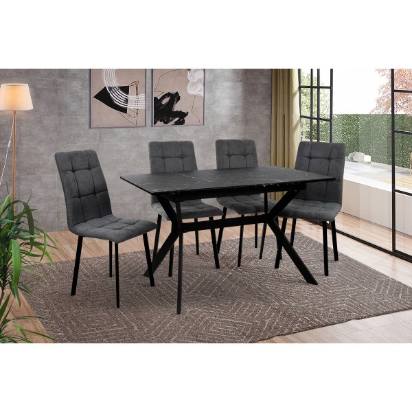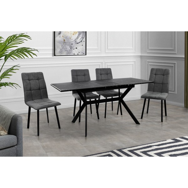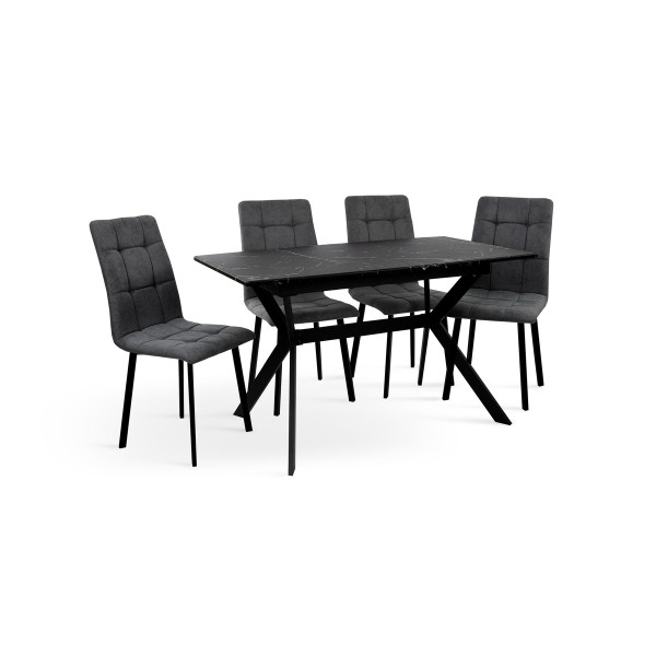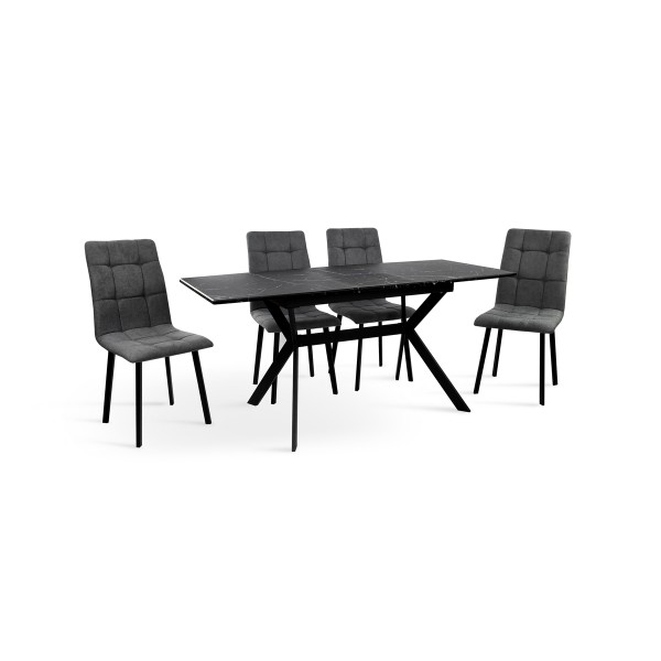 Розмір: 1300(+400)*770. Колір: Каркас і ніжки: чорний; Столешня: Мрамор темний. Матеріал: Каркас і ніжки: Метал; Столешня: МДФ у ПВХ плівці. Вкладка у стіл з механізмом "бабочка". Товщина столешні: 20 мм. Каркас і ніжки: порошкова покраска