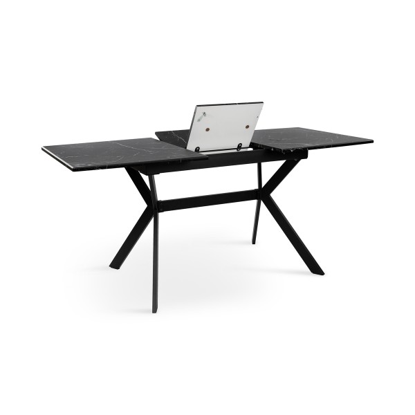 Стіл Хьюстон 130(+40)*77 чорний метал/мрамор чорн