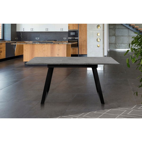 Стіл Хьюстон 130(+40)*77 чорний метал/мрамор темн