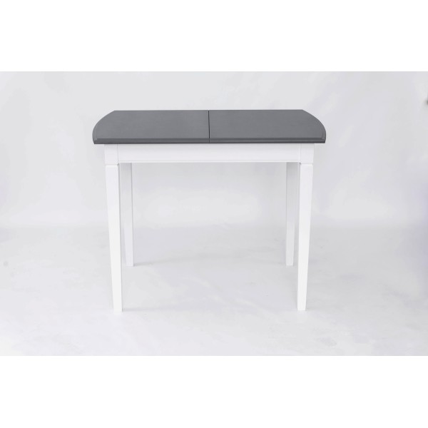 Розмір: 980(+320)*680; Колір: Каркас: Білий; Столешня: Сірий. Матеріал: Каркас: Масив вільхи; Столешня: МДФ фарбований. Товщина столешні: 19 мм.