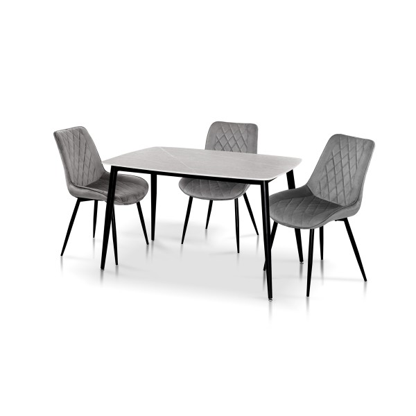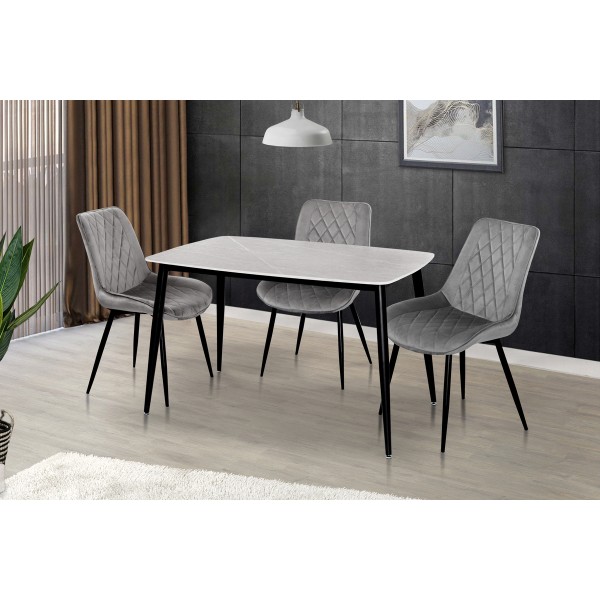 Основа столешні: Кераміка сірий мармур 8 мм (матова). Ніжки та каркас - металл чорний колір. Розмір 120 см*80 см. Висота: 76см. Кераміка - мармур сірий