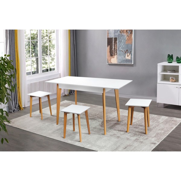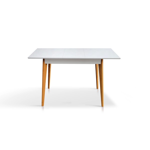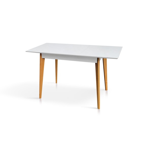 Розмір:980(+320)*680; H=760 Колір: Ніжки: натуральний; столешня: білий.Матеріал: Ніжки і каркас: масив вільхи; Столешня: МДФ фарбований