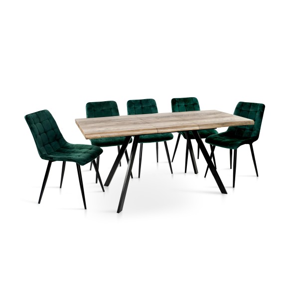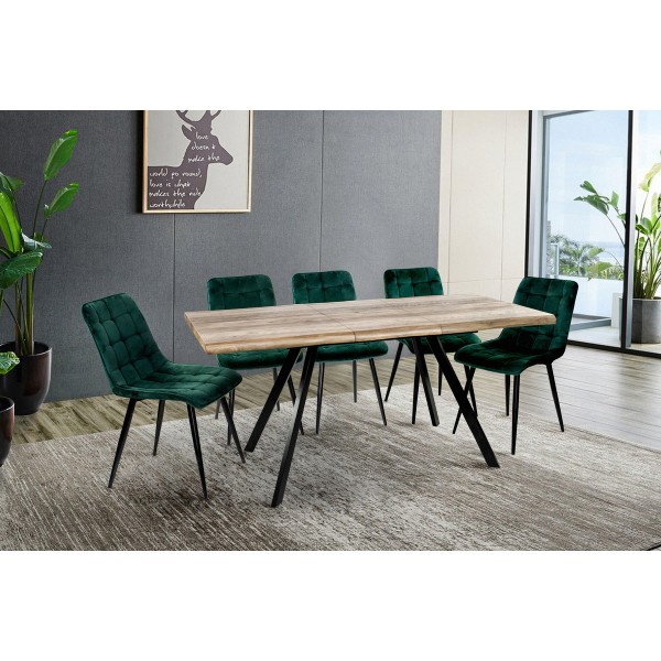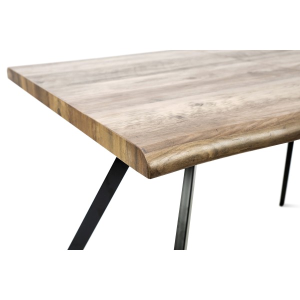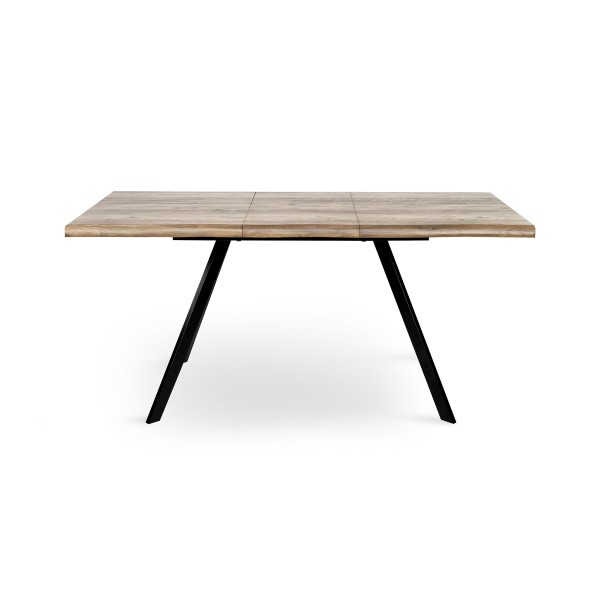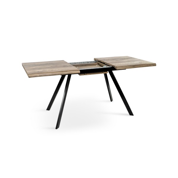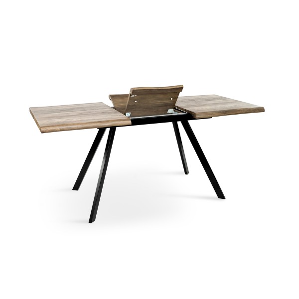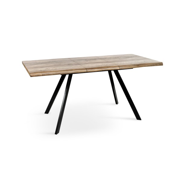 Розмір: 120*(+40)*80 см, H - 76 см; Розкладний: Форма прямокутника з ефектом криволінійної дошки; Колір: під натуральну деревину, ніжки - чорний. Матеріал: МДФ 38 мм товщиною, тонкий шар матеріалу з ефектом деревини (каширований цільнорулоний папір) Ніжки: метал порошкова покраска, колір чорний, товщина 40*80мм
