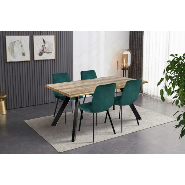 Основа столешні: МДФ 38 мм товщиною. Тонкий шар матеріалу з ефектом деревини (каширований цільнорулоний папір). Ніжки - метал порошкова покраска, колір чорний, товщина 40*80мм