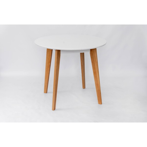 Розмір: D = 900 мм (+380) мм вкладка; Колір: Натуральний : Білий; Столешня: Білий; Матеріал: Каркас: масив вільхи; Столешня: МДФ фарбований.Цей стіл стане родзинкою вашого інтер'єру та легко впорається з поставленими перед ним завданнями. Тішить також якість виготовлення та надійність матеріалів