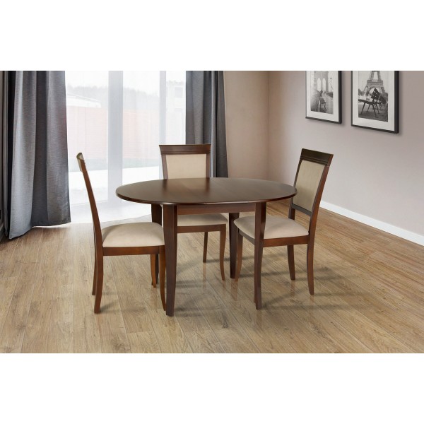 Розмір: 930(+250)*930 (круглий) Колір: Темний горіх, Білий Матеріал: Каркас: масив клена; столешня: МДФ зі штучним шпоном