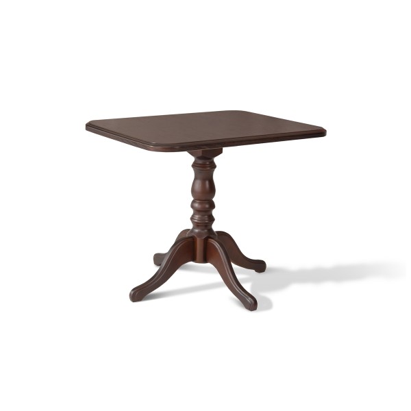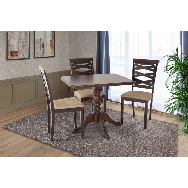 Розмір: 900*680, h: 735 Колір: Темний горіх Матеріал: Каркас: масив дерева; Столешня: шпонований дубом МДФ Моно - не розсувний стіл для вітальні з натурального дерева з елегантною точеною ніжкою. Торці столу красиво зафрезовані та пофарбовані. Столик виготовлений з масиву натурального дерева (каркас та ніжки). Стільниця виготовлена з плити МДФ, покритої шпоном.