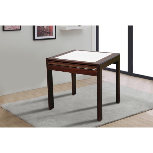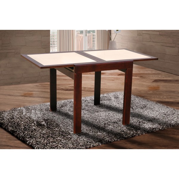 Розміри, мм У складеному вигляді 710 750 790 У розкладеному вигляді 1420 750 790 Матеріали Каркас та ніжки: массив клена. Стільниця: МДФ зі штучним шпоном. Колір Ніжки: білий або горіх темний. Стільниця: білий або горіх темний, центральна частина бежева.