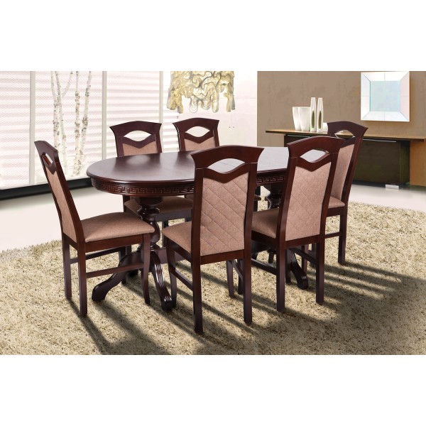 Стіл Обідній Розкладний Оскар Люкс Мікс Меблі 160-90Здавалося б, яка різниця як виглядає обідній стіл, призначений для прийому їжі, тим більше, що найчастіше на ньому знаходиться скатертина. Але як показала практика - ще як має! Якщо стіл виглядає привабливим, то і проводити час за ним набагато приємніше. Саме такою презентабельною моделлю є обідній стіл Оскар Люкс. Цей виріб зі звичайного обіднього столу з довжиною стільниці 160 см, шляхом простих маніпуляцій, перетворюється в шикарний банкетний довгою 240 см. До того ж, варто звернути увагу на те, що каркас і ніжки столу Оскар Люкс виготовлені з натуральної деревини. Бук - вважається благородною породою деревини, і вироби з нього цінувалися в усі віки. Відмінним поєднанням до натуральної деревини йде шпонований МДФ, з якого зроблена стільниця. Однак цим не обмежується список достоїнств даної моделі. По всьому периметру кромки стільниці виконаний різьблений малюнок. А красиві фігурні ніжки з'єднані міцної поперечиною для забезпечення додаткової стійкості конструкції. Вибираючи для оформлення вашої їдальні або обідньої зони у вітальні, ви не знайдете нічого кращого, ніж дерев'яний стіл Оскар Люкс. Розмір : 1600+(2*400)*900*750