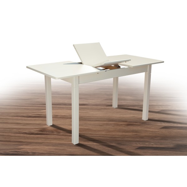 Розмір: 1130(+380)*700; H - 760.Колір: Білий Матеріал: Каркас: масив сосни; Столешня: МДФ шпонований Столик виготовлений із масиву натурального дерева (каркас та ніжки). Натуральна деревина - це матеріал, який фактично позбавлений недоліків, тому що вона щільна, тверда, красива. Стільниця виготовлена з плити МДФ, покритої шпоном.