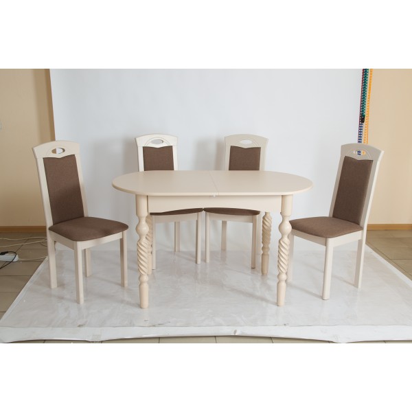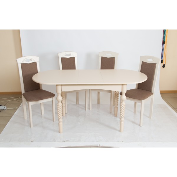 Довжина: 1080 мм (розкладний +320 мм) Висота: 750 мм Ширина: 730 мм Матеріал каркасу: Масив клена Матеріал стільниці: МДФ з художнім шпоном Тип: Розкладний (+320 мм) Частина, що вставляється в середину столу під час його розкладання, ховається в стіл
