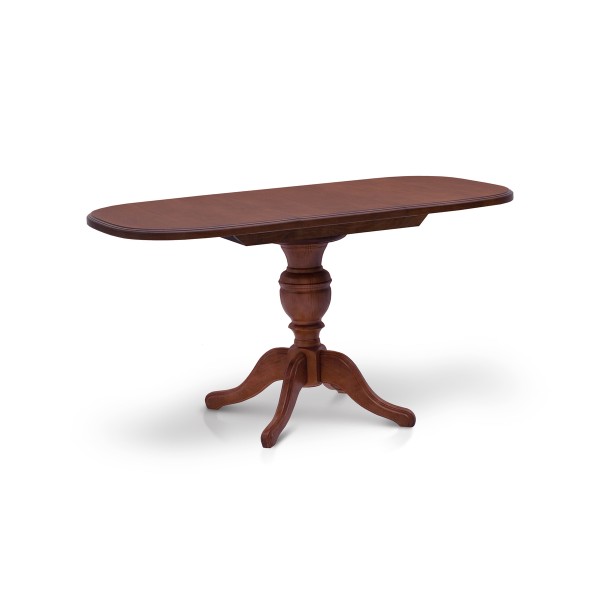 Розмір: 105(+40)*75 Колір: Горіх італійський Матеріал: Каркас і ніжки: Масив сосни; Столешня: Шпонований дубом МДФ Тріумф – розсувний овальний стіл для вітальні з елегантною точеною ніжкою, виготовлений з натурального дерева. Торці столу гарно фрезеровані та пофарбовані. Столик виготовлений із масиву натурального дерева (каркас та ніжки). Натуральна деревина - це матеріал, який фактично позбавлений недоліків, тому що вона щільна, тверда, красива. Стільниця виготовлена з плити МДФ, покритої шпоном.