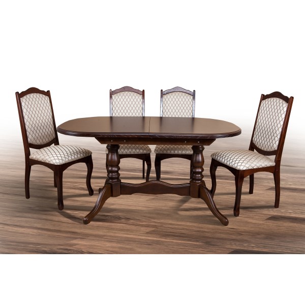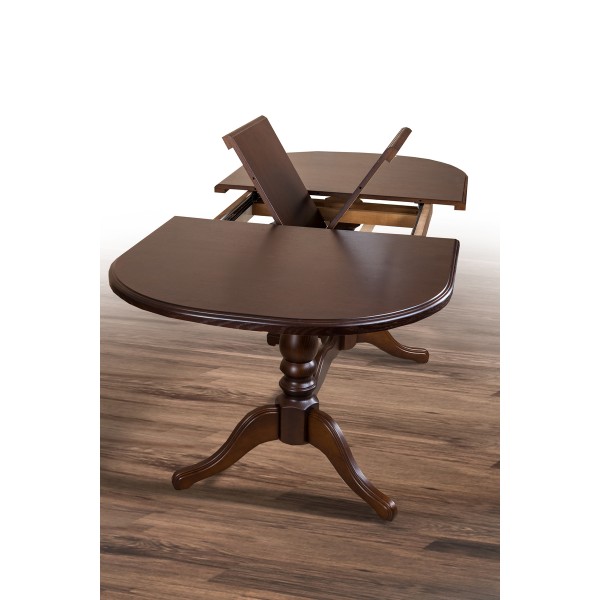 Розмір: 150(+40)*90 Колір: Темний горіх Матеріал: Каркас: масив сосни; столешня: МДФ фарбований. Прекрасний вибір для великої гостьової кімнати - розкладний столик з натурального дерева, висока якість виконання - буде довго служити і радувати Вас і Ваших близьких! Покриття лаком надає МДФу додаткову стійкість до механічних пошкоджень (царапин, сколів) та вологи. Декоративні елементи – точені ніжки та основа столу Вавілон від компанії МІКС Мебіл роблять його зовнішній вигляд неповторним і яскравим.