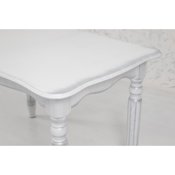 Стіл обідній Венеція (140+40)/85, білий+сріб патин